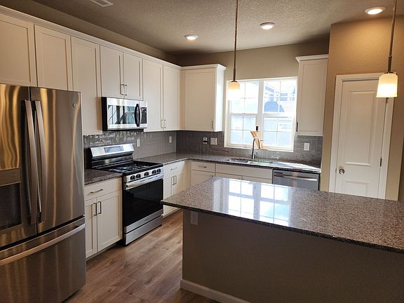 Enjoy this newer townhome, with 3 bedrooms, 3 bathrooms, 2 car garage and 1,658 sq. ft. Fantastic entryway, has a nice courtyard area. Large main level master bedroom with attached bathroom and walk-in closet. There are 2 more bedrooms upstairs with a full bath. Main level laundry, washer and dryer included. Main level has luxury vinyl plank flooring, stainless steel appliances, and a gas stove. The kitchen has Granite counter tops and large counter bar. Dining area off kitchen area. Fantastic Plantation shutters on main level. Enjoy the Air Conditioning in the summer time. Small pets considered. The HOA does the landscaping and snow removal. Don't miss out on this one! *Information is deemed reliable but not guaranteed. Tenant is fully responsible to verify inclusions and amenities prior to entering into a lease.