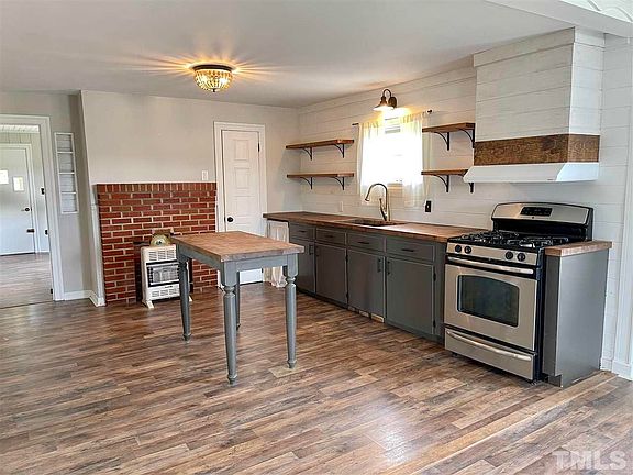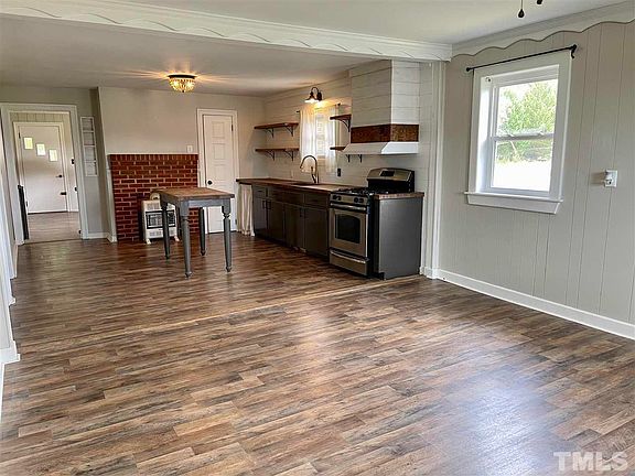 Charming 2 bedroom/1 bath ranch style brick home on 2.97 acres with 3 barns, pond view with part of the pond is on the property. Open plan, shiplap details, open shelving, butcher block countertops in kitchen. Separate Dining Room. Spacious utility/laundry room with storage closet. A must see! Listing agent related to sellers.