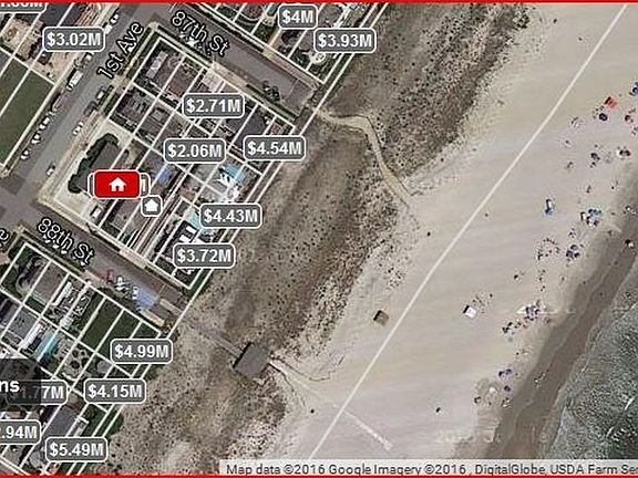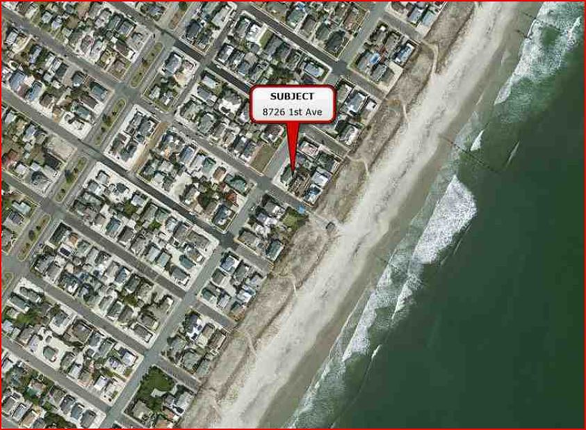 This prime location is beach block on the South Jersey shore! The house at 8726 1stAve, Stone Harbor, NJ 08247, is on the beach block with a view of the ocean and within walking distance to the 96th St shopping, yacht club, marinas, 80th St hotels and playgrounds, etc. The house is on the north/beach corner of the block, therefore it has open views to the South and ocean for ideal placement of balconies and decks. The beach lot that is open space on the diagonal view has a restriction not to build that maintains an open view to the beach and ocean (see images on the site of the view). You can arrange with me to go onto the deck to appreciate the view now to the beach and ocean, even before rebuilding and extending the house. The oversized 60' x 110'lot with corner location will permit ample space to build for sundecks, pool, hot tub, etc. Recent sales on this block have been $3.8 million and $3.75 million.