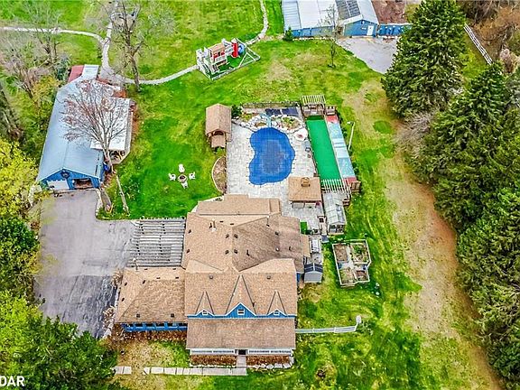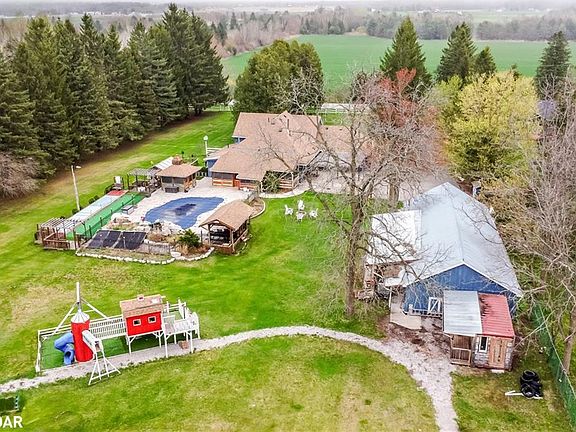 Experience the charm an potential of this exceptional 6.31-acre estate in the historic Hamlet of Colwell. This unique property features a character-filled home originally built in the late 1800s, thoughtfully updated to combine timeless appeal with modern conveniences. Inside, you'll find three bedrooms and a full bath upstairs, while the main level offers a spacious primary suite complete with generous closets and private ensuite. The heart of the home is an inviting eat-in kitchen, showcasing granite countertops, dual stoves, a stone backsplash, and a large island with seating that overlooks a cozy living space with a wood-burning fireplace. Enjoy relaxing in the warm and welcoming living room or the expansive four-season sunroom perfect for year-round comfort. The finished basement provides even more living space, including a serene spa-like bathroom with a soaker tub, a recreation room with pool table, and a versatile bedroom or office/den. Step outside from the kitchen into a large screened-in porch featuring a hot tub, built-in gas outdoor kitchen with dining area, and a convenient 2-piece bath all overlooking a stunning in-ground pool with slide and expansive patio. Entertain effortlessly in the detached Muskoka room, or enjoy the greenhouse, shuffleboard court, and children's play structure. A detached double garage offers an additional 1,200 sq. ft. of finished recreation space at the rear, while a separate 5,000 sq. ft. commercial-grade shop with R1 zoning provides incredible potential for business use ideal for trades, logistics, or home-based enterprises. Owned solar panels generating approx. $3,500/year. Newer high-efficiency furnace & A/C. Roof replaced in 2022. Pool is 5 years. This is a rare opportunity to own a one-of-a-kind rural estate offering flexible live/work potential, income generation, and room to grow. Show with confidence, this property truly stands apart!