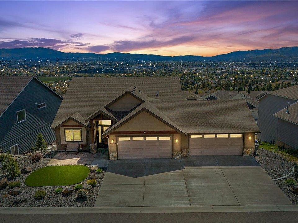 2020 Custom Gordon Finch Rancher atop the Northwood community. Stunning 180* Southerly views of the valley! Featuring 3600 sqft, this zero-step entry, open concept home has 5 beds, 3 baths, & oversized 4 car heated garage w/ epoxied floors. The masterfully designed kitchen has knotty hickory cabinets, specialty lighting, SS appliances, granite island, pantry, dbl ovens, gas range, and drawer microwave! The Great room, Dining, Primary bedroom, and laundry are all on the main floor. Natural light, engineered hardwood & tile floors, and granite on main floor. The covered deck has stunning views and great entertaining space. The primary bath has heated porcelain floors, dbl sinks, large tiled shower with rain head, separate commode, and step in closet. The basement has 3 beds, one is a large suite, all with step-in closets! Full bath w/ dbl vanities, family room, w/ sliding door to covered lower deck & paver patio. Solar panels fully owned, electric bills average $10!
