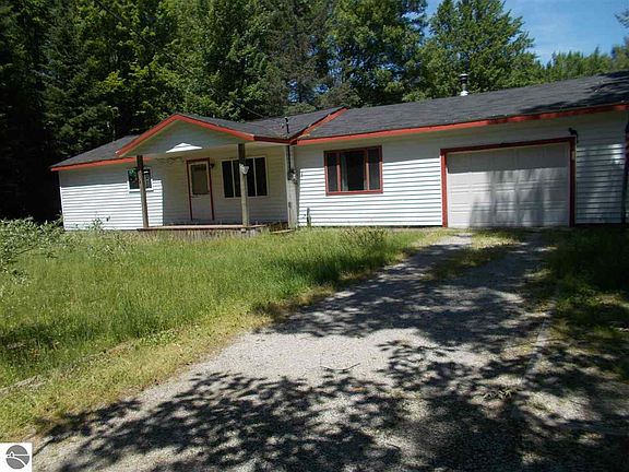 Very nice country setting on a paved road. This one level ranch has very large bedrooms open concept. Great starter or retirement home just a hop skip and a jump to all the local lakes, trails and town. Did I mention an additional 2 car garage to store all of your toys in. Snugly nestled in among the tress with a very large yard to play, sit by the fire, or garden in. This home is an estate.