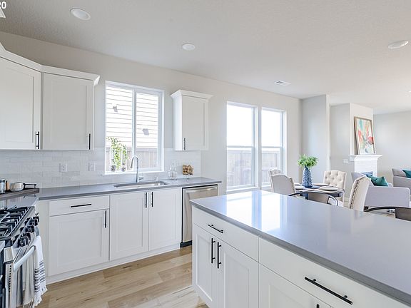 Move-in Special - Closing cost incentive with preferred lender! 3 bedroom home with upstairs laundry. Great room with laminate, gas tile surround FP. Kitchen w island, Gas SS Appliances, full tile backsplash, Alder Cabinets, pantry, Quartz countertops T/O. Front yard landscaping/irrigation and fully fenced. View beautiful Mt. Saint Helens from your deep backyard but landscaping not inc.