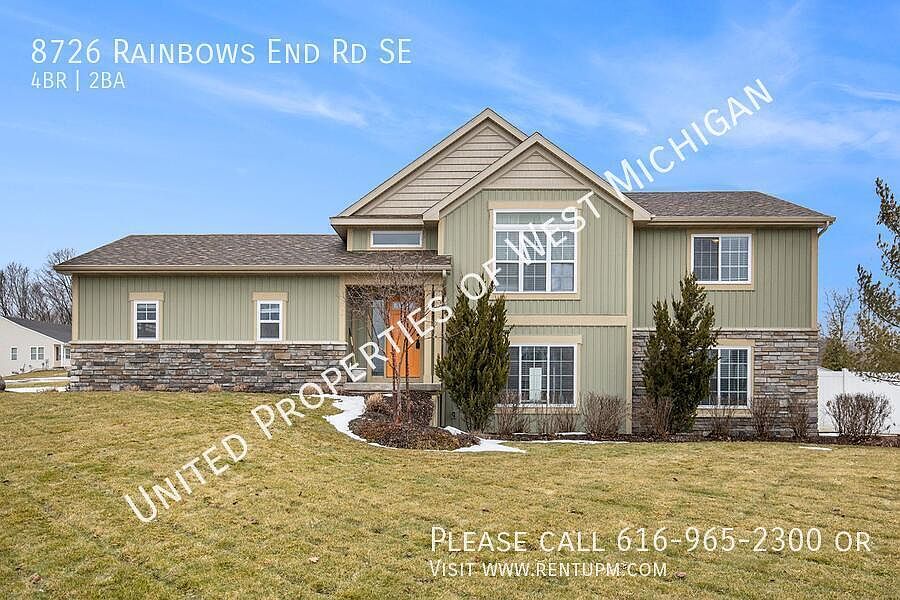 Welcome to 8726 Rainbows End! This charming 4-bed, 2-bath single-family home in Caledonia offers modern amenities and comfortable living. Enjoy the convenience of a dishwasher, central air, and in-unit laundry. The home features a spacious basement for extra storage, a garage, and off-street parking. Don't miss out on this well-appointed home in a fantastic location!. Once you submit an application, you can secure the property by paying a holding fee equal to one month's rent, which takes it off the market. This deposit later goes towards your security deposit. Depending on your credit score, the security deposit may be either one month's rent or one and a half times the monthly rent. If it's the latter, you'll need to pay the extra half before moving in. This property is offered by United Properties of West Michigan, the leader in property service since 2006, and the largest Property Management company in the greater Grand Rapids area with a 4+ star rating on Google! United Properties enrolls all tenants in our Resident Benefit Package, which includes monthly rental payment reporting to the major credit bureaus, resident rewards for on-time payments, and pest control protection. This added benefit is $25 per month in addition to the monthly rent advertised on this listing. Welcome to West Michigan, where vibrant community living meets endless opportunities for adventure and comfort. Nestled amidst the natural beauty of the region, this dynamic area boasts a rich tapestry of culture, entertainment, and outdoor recreation. From the sandy shores of Lake Michigan to the scenic trails winding through picturesque forests, West Michigan offers something for everyone. At United Properties of West Michigan, we prioritize comfort and convenience, providing well-kept homes tailored to suit diverse budgets and lifestyles. From charming duplexes to cozy apartments and spacious single-family houses, we offer a range of options to accommodate every need. With scenic views and essential facilities, our residences embody the essence of West Michigan, providing you with a welcoming environment to call home, where you can truly live, work, and thrive. Experience the warmth of West Michigan hospitality as you explore its vibrant communities, each with its own unique charm and character. From the artistic vibes of Eastown to the bustling energy of Downtown Grand Rapids, you'll find a welcoming community that embraces diversity and celebrates individuality. Come discover all that West Michigan has to offer and let us help you find the perfect place to begin your next adventure. Welcome home to West Michigan where community, culture, and comfort await. We are eager to help find your new home, and help make the transition into your new home go as smoothly as possible. * Basement * Central Air Conditioning * Gas Furnace * Lawn Care Not Included * Snow Removal Not Included * Stove/Oven * Tenant Pays All Electric * Tenant Pays Trash Removal *Attached Garage *Laundry In Unit *Microwave *Stainless Steel Appliances *Tenant Pays Gas Water Heater Electric