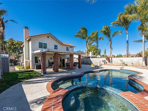 WELCOME TO 8726 SANDHILL CT. This two-story home in Orangecrest is within walking distance to Orange Terrace Community Park, Thundersky Park, Tomas Rivera Elementary School, and Amelia Earhart Middle Schools. The home offers a POOL/SPA, RV PARKING, and a LARGE COVERED PATIO, perfect for those summertime parties. The first floor has a living room, dining area, DOWNSTAIRS BEDROOM, A FULL BATH, a family room with a fireplace, and a remodeled kitchen. The second floor has a main bedroom with an en suite bathroom with dual vanities, two additional bedrooms, and a hall bath. Other features include NEW CARPET FLOORING, ceiling fans, and much more! THERE ARE NO HOA DUES, AND BETTER YET, THE PROPERTY TAXES ARE LOW. Come live in the planned community of Orangecrest!