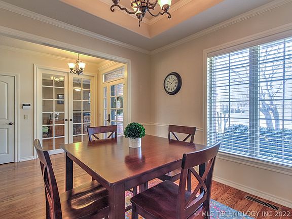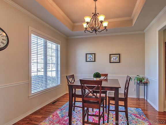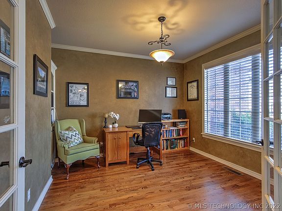 One of a kind Parklike backyard in Legacy Park! 4 bed, 3 1/2 baths, vaulted ceilings! Large island kitchen open to family room overlooking backyard deck and spacious yard. Oversized 3 car garage w/storm shelter, 3 bed up with game room and craft area. Office off entry. Neighborhood pool. Jenks S.E.