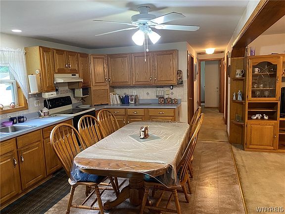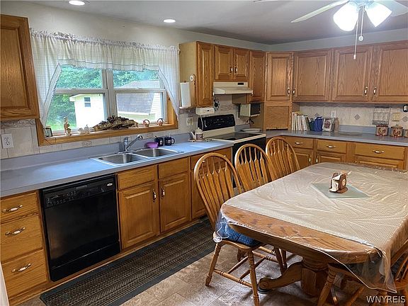 Beautiful 2 Bedroom Ranch in East Pembroke with Eat In Kitchen, Oak Face Cabinets, Sink with Window Overlooking Deep 2 Acre Lot, Kitchen Open to Bright Living Room, Laundry Room with Walk-In-Tub, Extra Wide Blacktop Driveway to Extra Deep Attached Garage with Workshop and or Additional Car Spaces, Electric, Water Spigots and Floor Drain, Garage to Full Basement with Finished Storage Room, Hi Efficiency 3 Years Young Gas Furnace, Auxiliary Wood burning Stove, Open Front Porch with SunSettor Awning, Mature Fruit Trees, Shed with Workshop, Roof 4 Years Young, Convenient Location to Central and Western New York, A Rural Feel in a Neighborhood Setting! 2022-10-11