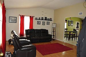Great starter home! Raised ceilings, laminate wood flooring with good sized yard and extended patio! Well maintained with nice floorplan! Stainless refrigerator, washer and dryer included with acceptable offer.