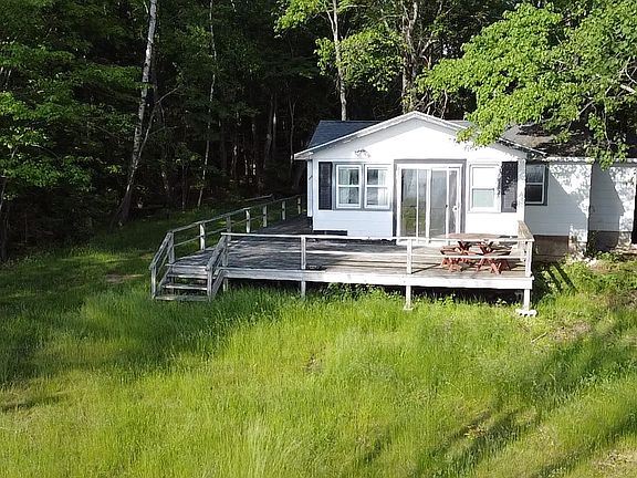 Hard to Find! Ready to use Cabin for the summer. 2 Bedroom 1 bath cabin located on 1670 acre Pine Lake which is a spring fed, full recreational lake that is great for fishing and boating. The lot is level to the lake and features 100 feet of sandy swimming frontage. There is a variety of mature trees which gives a privacy feeling to this property. Large kitchen and dining area. Living Room located at the front of the cabin with large windows looking out to the water. Great views for Sunsets facing straight west! Brand new foundation was built under the cabin 1 year ago so you'll have no issues! 2 Car Garage is great for storing all your toys. Large level front yard leading to the water is great for gathering with your friends and family. Call today as this won't last long. Nothing else is listed on the market so get it now!