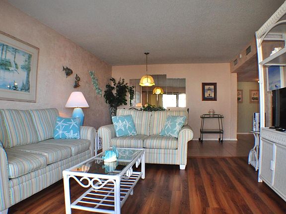 CURRENTLY UNDER CONTRACT, SELLER ACCEPTING BACKUP OFFERS. Pretty view of the pond and gulf from this 2BR/2BA Sugar Beach condo. Updates include new wood flooring, refinished kitchen cabinets and new countertops, fresh paint, new vanities in both baths, and new AC and hot water heater. The unit overlooks the Sugar Beach turtle pond and you can see the Gulf of Mexico from the balcony. Immaculate and well taken care of, this would be a great investment property or second home. Sugar Beach is a very popular gulf front complex convenient to so many restaurants, golf courses, shopping and more. Amenities include a large pool, clubhouse, barbecue grilling area, tennis courts and a dedicated beach. All info is approx. and must be verified by Buyers if import.
