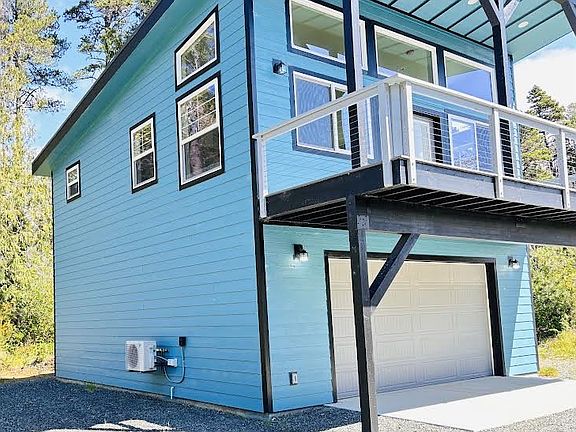 Nestled within the lush, forested landscape of Bandon, this newly constructed modern-style home brings contemporary elegance amidst the natural beauty of the surroundings. Situated on long acre lot near the beach, the property offers a harmonious blend of tranquility and coastal charm. Upon entering, one is greeted by the sleek sophistication of the interior, where clean lines and minimalist design elements create an atmosphere of modern luxury. The spacious living area is bathed in natural light, courtesy of large windows that frame views of the forest. The heart of the home lies in the impeccably designed kitchen, adorned with all brand new stainless steel appliances. Here, create gourmet delights while enjoying the convenience of state-of-the-art amenities. Adjacent to the kitchen, a set of glass doors leads to a beautiful deck offering the perfect setting for sunset dinners or leisurely morning coffees. The property features a spacious two-car garage with a built-in workshop and a full bathroom. This versatile space presents the opportunity to create additional living quarters. A blank canvas for so many creative opportunities. Located in a quiet corner of the highly desirable Sunset City picnic area, the property boasts a private fire pit area where residents can gather under the stars for cozy evening. Sheltered from the coastal winds by the surrounding trees, this spot is adorned with huckleberries and Rhododendrons. For those seeking outdoor adventure, the home's prime location offers easy access to world-class beaches and a nearby state park, inviting residents to explore miles of pristine coastline and scenic hiking trails. This modern retreat offers an unparalleled opportunity to embrace the coastal lifestyle in style and comfort.