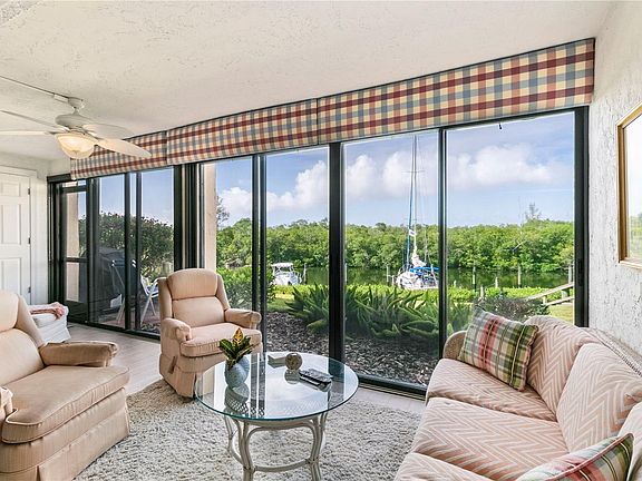 Enjoy easy Gulf of Mexico access from this perfectly priced, canal front condo. This spacious condo, which lives like a house, comes with an on-site deeded dock (dock #9) directly behind the home with potential for sailboat use. The canal runs along tranquil conservation land, offering captivating views. What we love about this 2 bedroom, 2 bath home in addition to specular views, are the large rooms, tasteful updates, plus 2 Florida rooms, offering additional living spaces. This one is move-in ready, including furnishings, with beautifully updated kitchen and baths. The roomy kitchen has plenty of space to cook and entertain with friends and family. Newer stainless appliances, including a double oven, are only 4 years young, plus gorgeous cabinets and granite counters. The large living room has a cozy wood-burning fireplace. Split bedroom plan has the master suite and second bedroom at opposite ends of the home from each other, making each bedroom a private sanctuary with large closets and lots of storage. Both baths are sizable, and the master bath is truly impressive. This condo is pet friendly; one of the few which allows a cat or dog with no weight limit. The amazing location is close by beaches and the historic Cortez Fishing Village, with casual shops and seafood restaurants where you'll enjoy encounters with herons, pelicans & egrets. Easy drive to beaches, downtown Sarasota, and to the Sarasota Bradenton International Airport (SRQ).
