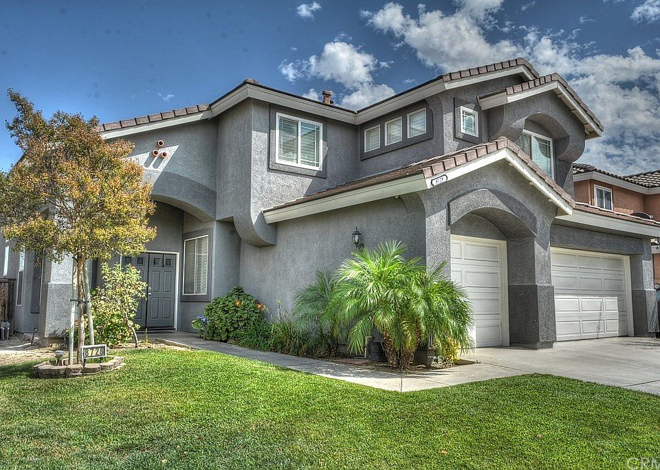 2 Story Orangecrest home with Stunning Pebble Tec Pool and Spa. Home can be configured for 4-6 bedrooms. Home features High Ceilings, (Engineered) hard wood floors and Plantation Shutters. Formal Living Room and Dining Room has plenty of space for entertaining. The kitchen features an island with breakfast bar, custom cabinets, granite and tile backsplash and Stainless steel appliances. Family room has a new custom Stacked stone fireplace perfect for those cool nights. Downstairs also features an office room that could be used as a bedroom, full bathroom, and large indoor laundry room. Upstairs you'll find the Spacious Master Suite which has dual sinks, separate shower and soak tub with an expansive walk in closet. City lights view from master. 3 additional bedrooms, bonus room and full bath. 3 car garage. The back yard is perfect for cooling off, having fun and entertaining. The pool and Spa are Pebble Tec with color changing lights. They are surrounded by beautiful tumbled stone and Stained/Stamped concrete. No need to worry about upkeep of the lawn because it is artificial turf. Everyone can enjoy a cool evening sitting on the custom benches surrounding the gas fire pit. Solar panels to generate much of your electricity will be paid off at Close. Home is centrally located to most area amenities including schools, restaurants, and shopping centers. You can even walk to nearby Orange Terrace Community Park & library. Community has top rated schools with no HOA & low taxes.