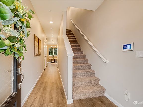 Experience this charming 2022 townhome just 1 mile from Arlington Hardware, nestled in the serene Gilman Walk community amid a stunning 100-acre conservation area with breathtaking mountain and river views. The home features 9-foot ceilings and an open-concept layout that seamlessly connects the living and dining areas. The kitchen features quartz countertops, 42” cabinets & stainless steel appliances. Elegant details like luxury plank flooring, two-tone paint & recessed LED lighting enhance the interior. Upstairs, enjoy a spacious primary suite with a dual-sink vanity & walk-in closet, plus two additional bedrooms, a second full bathroom & an office nook. Enjoy convenient access to I-5 and all that Arlington has to offer.