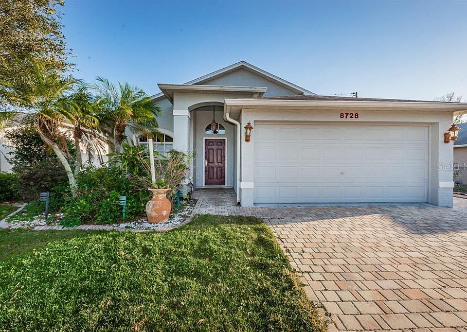Welcome home to this Move In Ready 3 BR, 2 bath, with an attached 2 car garage home. The kitchen is gorgeous with newer cabinets, oversized island, granite counters and opens up to the family /dining room areas, which make this home great for entertaining. The screened in lanai is the perfect place to enjoy your morning coffee or relax with a book. Owner's suite features ensuite bath and nice sized walk-in closet. Two additional bedrooms, plus another bath make up this lovely home. Tile flooring throughout home - no carpet! No HOA or CDD fees. Pavered oversized driveway. Convenient location to Schools, Shopping, and Restaurants!! Call to schedule your showing today!