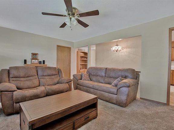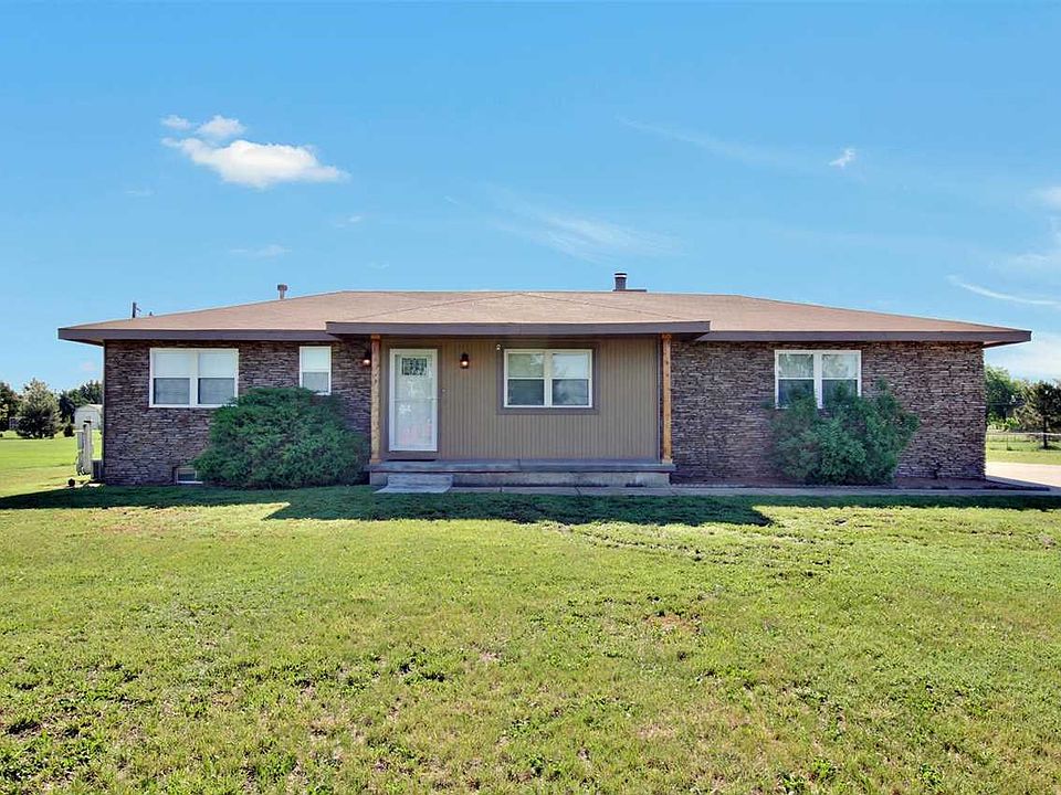 Country living at it's best! Beautiful well maintained home with lots of upgrades with over one acre lot. This home is located in Valley Center and close to Wichita. The exterior of the front of the house has been remodeled with new masonry stone, a new concrete porch slab, new cedar posts, new porch lights, and new entry and storm doors. The living room has new carpet, new paint, newer ceiling fan, knockdown texture ceilings and a coat closet. The spacious kitchen has lots of cabinets, counter space, a pantry, stainless steel appliances and tile flooring. Dining room has a new ceiling fan, tile floors, a built in cabinet and a sliding door that leads to the nice covered porch. There is an attic fan in the hall. The master bedroom has a good size closet, a new ceiling fan, new paint and it is adjacent to the bathroom. The bathroom ha been remodeled and updated. It has a new window. There is another bedroom in the main floor with new carpet. The full finished basement has a rec/fam room with a nice stone faced wood burning fireplace. It also has a 21' X 11'8" non-conforming room with double closets and new carpet. Huge basement laundry with tile floors. The basement bathroom has a built in CEDAR SAUNA! Plumbing installed in basement for a wet bar. The house has an attached two car garage with a keypad entry. The large concrete driveway leads to a 30' X 50' detached garage with double garage doors and a keypad entry. The front half of this garage has been insulated and the back half ha built in shelving, a separate paint storage room with built in shelving and exterior security lights. Close to the garage, there is a concrete dog run/chicken coop with roof and cover. The amazing gazebo has vaulted ceilings, a hot tub, a stone fire pit, lighting, receptacles, and gates in both sides, to the yard and to the house. It is perfect for entertaining! Water filter system was installed in 2016. The generator was connected and wired to transfer switch in basement to power house. Smart wi-fi thermostat was installed with app access and can be controlled from cell phone . Exterior flood lights have been updated.