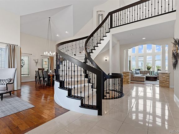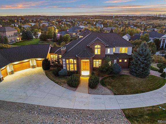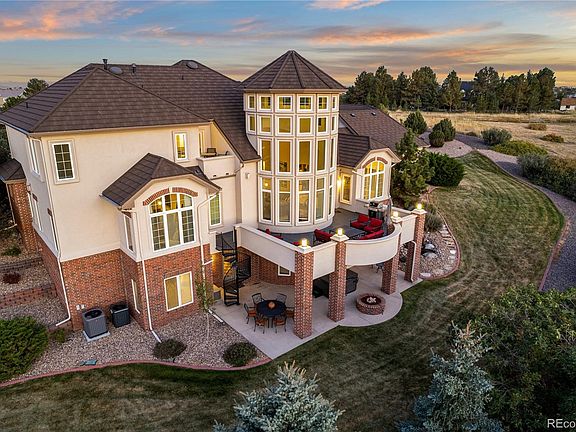 Introducing 8728 Ridgepoint Dr, a marvel nestled on 2 acres in the prestigious Hidden Point Estates neighborhood, Castle Pines North. This exquisite property boasts an array of enticing features that cater to all your desires. It is time to indulge in the epitome of Luxury living. Step inside this stunning home and be greeted by a grand entrance. A cascading staircase runs through the center creating a dramatic elegant touch to the interior. The beautiful great room with soaring cathedral ceilings and west facing windows creates an expansive and airy atmosphere, allowing natural light to cascade throughout. Equipped with six generous sized bedrooms and seven bathrooms, this residence ensures that everyone has their own private sanctuary. Each bedroom is complete with a walk-in closet and en suite bathroom, providing ultimate comfort and convenience for your family and guests. Prepare to be impressed by the gourmet kitchen that showcases an over-sized island perfect for both meal preparation and entertaining. This space will definitely meet your culinary expectations. Entertainment takes center stage in this home. The Theater room promises endless movie nights with your loved ones, along side the basement kitchen/bar and spacious family room area ideal for hosting gatherings and celebrations. Additionally a large workout room is available for those seeking an active lifestyle. The exterior of this home harmoniously combines relaxation and recreation. Enjoy mesmerizing west mountain views from the upper deck or gather around the fire pit creating unforgettable memories on cool Colorado evenings. Furthermore, a basketball court adds a playful element to your outdoor activities. Parking will no longer be a concern with an over-sized 6 car garage providing ample parking space for all your vehicles and recreational toys. This home is a haven for those seeking unparalled luxury and functionality. Don't miss the opportunity to call this masterpiece your own.