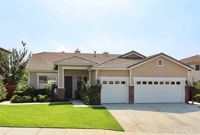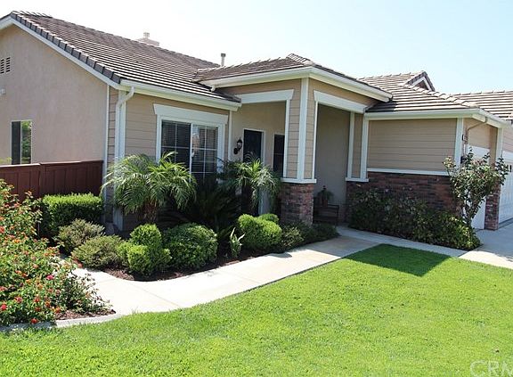 Rare, Single-Story, Beauty found in the highly sought after Autumn Ridge gated community of Orangecrest. This home features 3 bedrooms and 2 full bathrooms which have been upgraded throughout. Walk into the formal living room/dining room and you're greeted by the large tumbled stone flooring and upgraded carpet. Custom granite countertops with a custom backsplash accent the kitchen. The center island features a large double sinks with a stainless faucet. Recessed LED lighting throughout the home, high baseboards, custom wood blinds and ceiling fans in each room which keeps the home cool day and night. The great room is large enough to host your family gatherings around the beautiful fireplace. Find your way into the master suite that includes an incredible view of the perfectly manicured backyard, dual vanity sinks and both a walk-in shower and bathtub. You will be amazed with the size of the master walk-in closet. Down the hallway are the 2 large guest rooms that are beautifully decorated. As you make your way to the large 3-car garage, you come across the laundry room with shelving to handle your heaviest loads. The backyard has been manicured for your pickiest of buyers. Every tree, all plants and roses have been clipped to perfection and the grass carefully cut to impress. Drip systems and automatic sprinklers keep the serene landscape blooming all year long. Walking distance to schools, shopping, community center and churches. Great access to the 215/60/91 freeways.