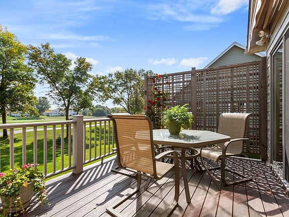 Location, Location! Fabulous lot o'looking the 17th hole of Edinburgh championship golf course! Relax on the private (maintenance free) deck and enjoy the picturesque views. This lovely walkout rambler has a great floorplan + top quality updates and features! Bright and spacious kitchen has Cambria counter tops, double oven, lots of counter space + an abundance of solid cabinetry. The main floor office with glass French doors is an ideal workspace for people working from home. The master suite has stunning views and walks out to the deck. The comfortable four season porch is roomy and offers scenic views. Spacious LL family room is perfect for any gathering. It features a frplc & patio doors to an aggregate patio. There are 2 more BRs on this level & a 3/4 BA. Recent updates: Roof, Windows, siding, concrete sidewalk, beautiful paver steps & landing, sealed driveway, high efficiency furnace & A/C.