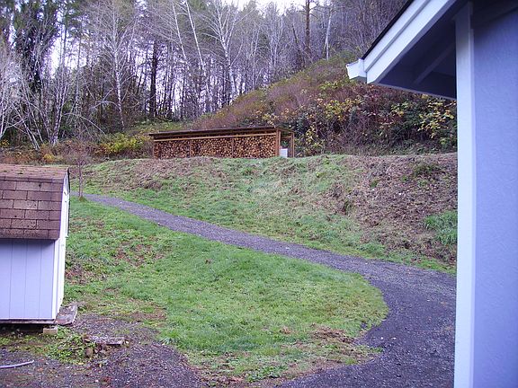 Country living on 4.45 acre in this remodeled 3 bdrm/1 full & 1 partial bath home. Two 10 x 20 garages w/10 x 12 sheds attached. Hot water heater; metal roof (2014); "Smart-side" siding (2014); front porch (2015). 1000 gallon Norwesco septic tank (6/2015); woodshed/equipment shed. Grapes, filberts, apple trees with drip irrigation.