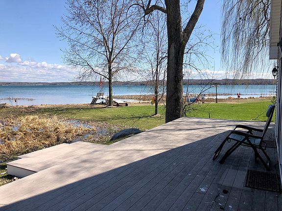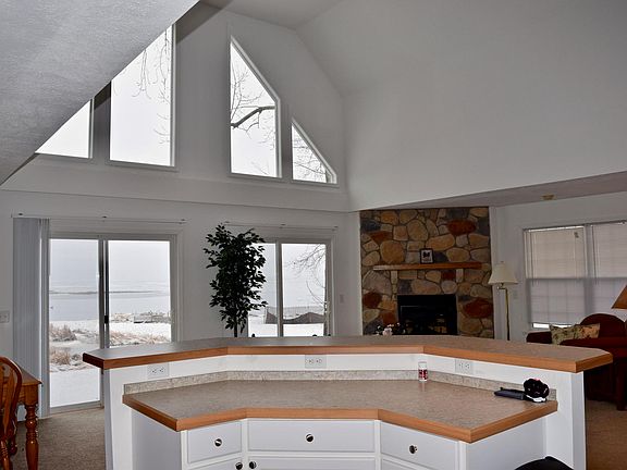Beautiful home on Portage Lake!! Lovely 3 Bedroom, 2 Bath lakefront home with 2,214sqft of comfortable living spaces. Nonstop water views. Kitchen has stainless steel appliances and an island that opens to the dining area. Beautiful stone fireplace in living room. Spacious wrap around deck for entertaining family and friends. Master bath has double sinks, soaking tub and separate shower. Huge master closet is accessed through the master bath. Crawl space has easy access inside and is dry for extra storage. This is the ideal place to sit back, relax and enjoy summer fun!