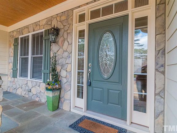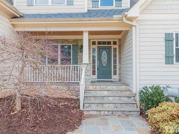 GARDENER'S DREAM w/CONDITIONED ECO-FRIENDLY GREENHOUSE! Large professionally landscaped, wooded homesite. Natural stone rocking chair front porch. Open floor plan w/1st floor master, huge walk-in closet, Chef's kitchen w/island, quartz counter tops, tile backsplash, SS appliances, dual fuel range, pantry, custom moldings, new carpet, fresh paint, screen porch, deck & patio. Walk-in storage galore, crawlspace w/concrete pad for workshop & so much more! Only minutes to Falls Lake, shopping & restaurants.