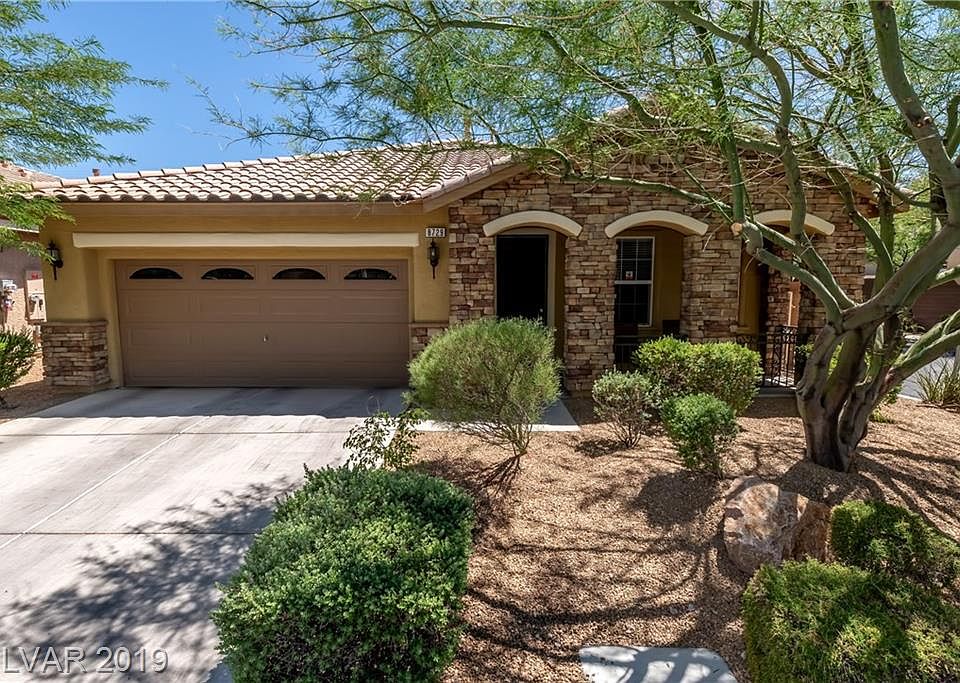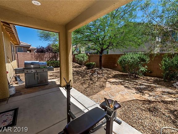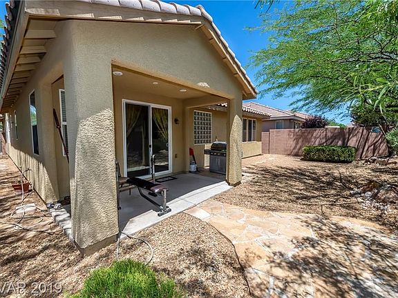 Hurry and snap up this gorgeous and well-maintained single-story home located in a gated community with clubhouse/pool privileges in Mountain's Edge! Only 2 neighbors on this corner lot with generous sized kitchen with Venetian Gold granite, large island & breakfast bar for the chef-at-heart! Enjoy crown molding throughout, 2-tone paint, ceramic tile flooring and bath surrounds, laundry cabinets & sink, large covered patio & epoxy garage floor