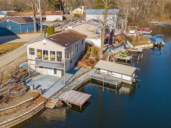 WATERFRONT-- This home is right on the water on popular East Lake. Beautiful panoramic views from the home, sunroom and deck. Fish right off the dock or step right in to take a swim. Home is at the mouth of the cove overlooking main body yet outside the ski zone. New dock with aluminum boat slip and boat lift. Walk out Basement.