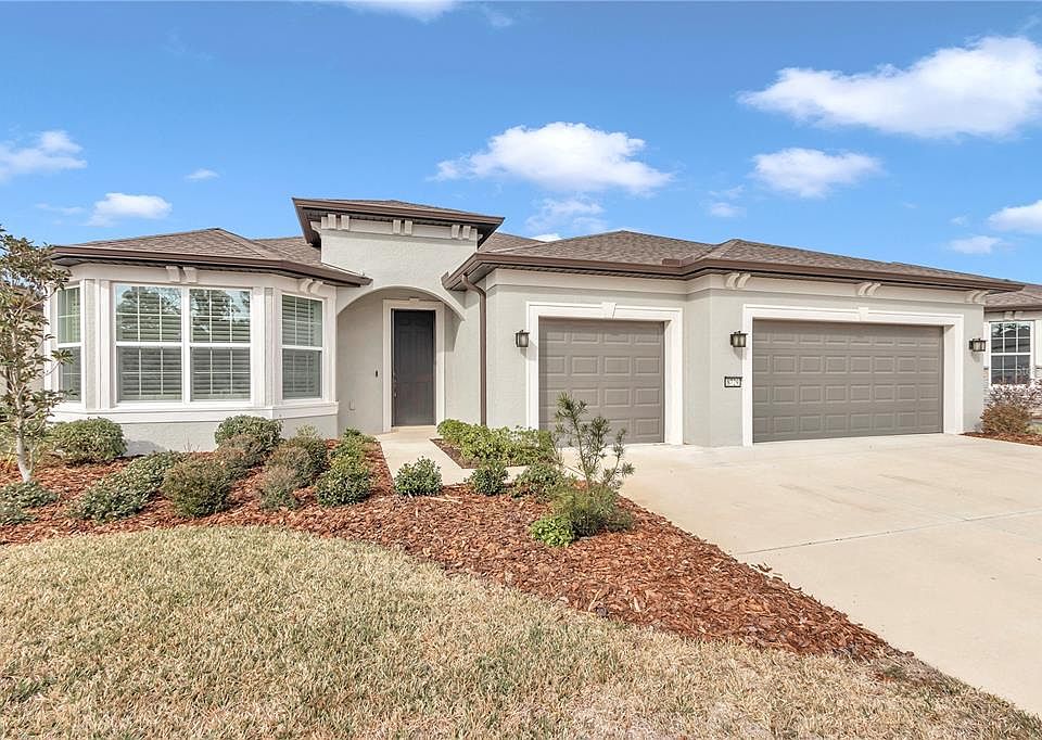 Located in the 55+ community of Stone Creek, this popular Stardom model was built in 2023 and boasts an open layout that is perfect for entertaining family and friends. This model essentially has two Master Bedrooms, each with their own Master-Sized Bathroom, walk in closets with tons of shelving & linen closets, plus a versatile Flex Room that can be Office, Den, or Craft Room and a half-bath for daytime guests. The Kitchen is a cook's dream with upgraded cabinetry, built-in stainless steel KitchenAid appliances, quartz countertops, under cabinet lighting, a touch faucet, walk-in pantry and a large island overlooking the Great Room that can easily seat 4 counter height bar stools. The house has luxury vinyl plank flooring in the main living areas, carpet in the bedrooms and tile in the Bathrooms and Laundry Room. Inside you will find decorative upgrades such as Hunter Douglas Shutters, upgraded carpet and padding, recessed lighting, trim upgrades, a floor outlet in the Great Room, 9' ceilings and Kohler fixtures. Additional upgrades include TV wall mount bolts in both bedrooms, electrical upgrades, a wi-fi repeater and more. The Great Room has expansive 16’ glass doors which, when opened, pocket behind the wall offering an unobstructed view of the expanded covered Lanai/Backyard which is large enough for a pool installation and great for entertaining on the mild Florida nights. The Garage has room for the golf cart and yard tools. Featuring a 3 car garage with professionally insulated garage doors, additional ceiling outlets, and a storage area/closet with shelving to keep clutter out of sight. The driveway is deep enough to park a full sized SUV or truck. Exterior upgrades include gutters, decorative trim, landscaped privacy buffer in the backyard, and a retractable screen at the front door. There are too many upgrades to list! This home has been meticulously maintained and has not had pets or smoking. Be sure to ask for the list that has been provided and PLEASE CLICK THE VIRTUAL TOUR LINK to “walk” around this gorgeous home. ~This home is located in the Lexington neighborhood and is a quick walk to the Golf Club & Grill and is also within close proximity to the Amenities Center. Residents of Stone Creek enjoy an array of amenities, including a 24-hour guarded gate, fishing ponds, and multiple recreation centers. The new Stonewater Clubhouse offers golf simulation, a social space with beer and wine service, a large lagoon pool, an indoor lap pool, the Elan Spa with sauna & steam rooms, and both indoor and outdoor spas. Active adults can also take advantage of a state of the art fitness center, a basketball court, tennis courts, shuffleboard, softball field, bocce, pickleball courts, and a public golf course. With a variety of social events and activities, this community truly has something for everyone. Conveniently located to shopping, restaurants, and medical facilities. Come live your best life!