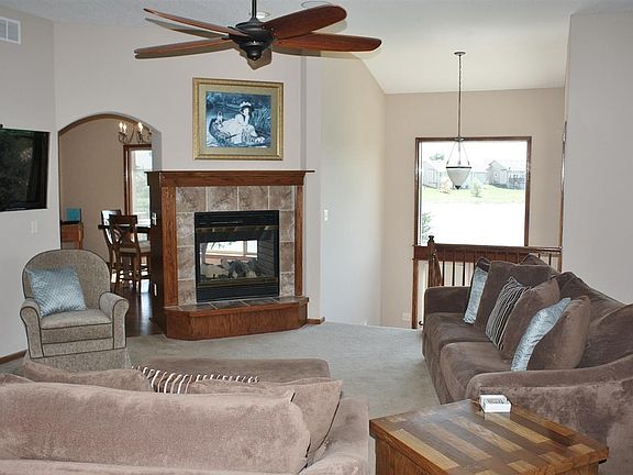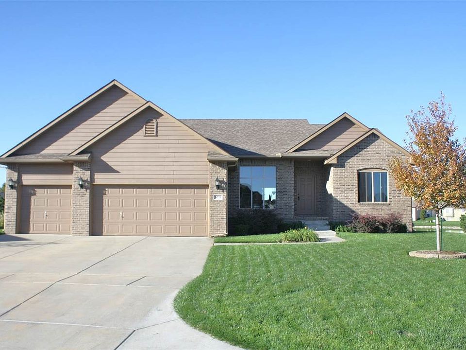 This gorgeous split-bedroom ranch is located on one of the most beautiful lake lots in Tyler's Landing. Transom windows for lots of natural light - living, dining & kitchen are spacious and inviting. See-thru fireplace from living room to hearth room. Kitchen boasts alder wood, granite counter tops, smooth-close cabinet drawers, pull-out shelves & walk-in pantry. Master is spacious and opens onto deck with another lovely view of the lake. Private master bathroom with whirlpool tub, upgraded sinks, tiled floor & walk-in closet. Popular mid-level walk-out to backyard, too. Basement bathroom is completely finished, and there are 2 bedrooms, family room & extra room (great for crafts or poker, too) which just need paint and flooring. Plumbed for wet bar & sellers did put in a daylight window for future 6th bedroom. So many upgrades throughout this one-owner home! Special features include: extra insulation, wired for surround sound (both levels), lots of recessed lighting, rounded corners/arches, raised ceilings & oversized windows. All this on a pie-shaped culdesac lot with well & sprinkler. Maize schools, too.