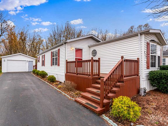 Immaculate Chesapeake model in Indian Trails adult community on a premium lot backing to Indian Oaks Park, best lot and huge deck in the neigborhood. Drywall interio,r with 2 Bedrooms plus a den, 2 full Baths, gorgeous eat-in Kitchen and a Laundry/Mudroom. All new laminate wood flooring throughout! Large deck extends from rear of home across entire lot with total privacy. 1.5 car Garage is heated and air conditioned! Nice sized closets and storage and absolutely move in condition! Nothing wrong with home, but is being sold as-is!