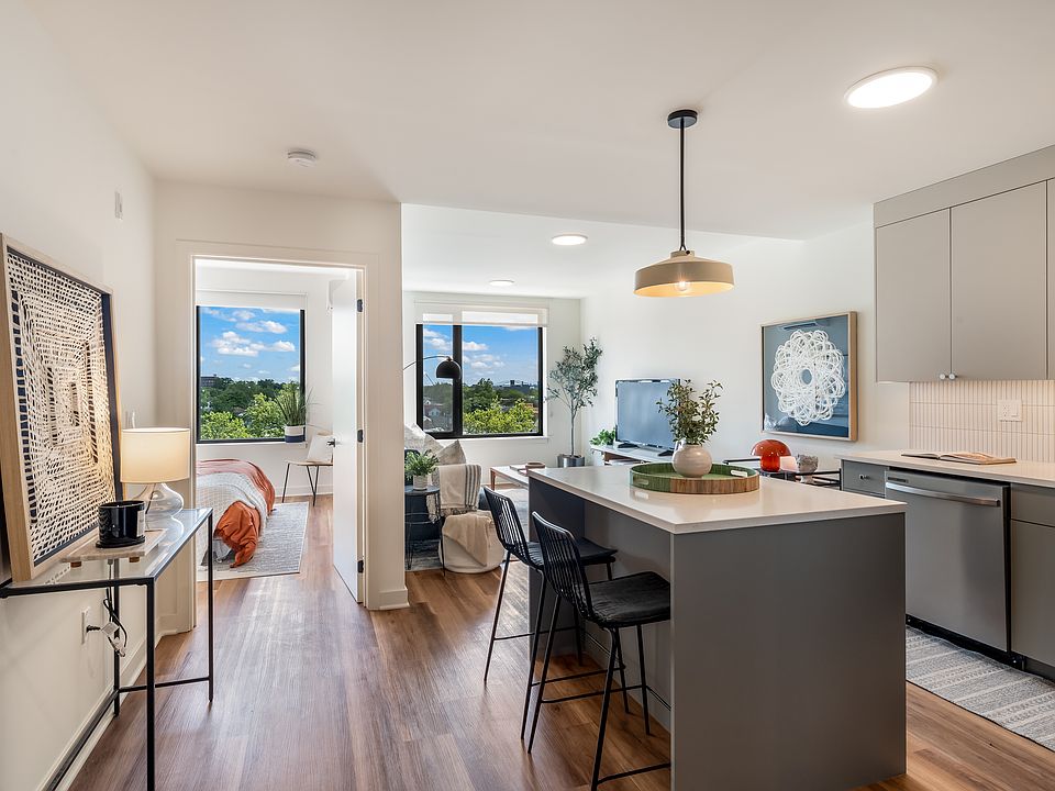 Offering exceptionally spacious and thoughtfully designed floor plans, Verde surpasses the competition. Many layouts feature an abundance of dens, providing flexible space for work or leisure. Residents enjoy the convenience and security of keyless smart access, while natural wood-look LVT floors enhance both style and durability. Oversized windows invite abundant natural light, creating bright and airy living spaces. The chef's kitchen, available in select layouts, boasts an island and state-of-the-art Samsung appliances, including a dishwasher in every unit. Each residence also includes a separate Samsung washer and dryer for effortless daily living. Luxurious spa-style bathrooms elevate the experience with vessel sinks, custom cabinetry, and rain showerheads. To ensure personalized comfort year-round, every room is equipped with remote-controlled mini split AC units.