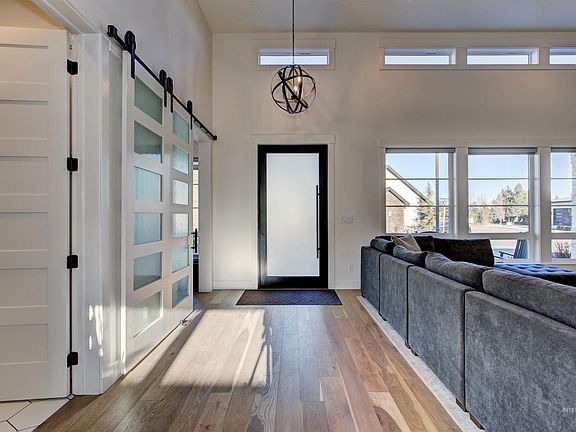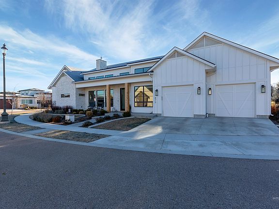 Tremendous Lakemoor Location! Steps away from the Boise River and Greenbelt access at Pamela Baker Park. Gated Community. Huge family room w/floor to ceiling tiled fireplace, massive windows w/custom upgraded window coverings, 14' ceilings, hardwood flooring, recessed lights and ceiling fan. Kitchen with a oversized island w/quartz countertops, plenty of cabinets w/soft close pull-outs, Miele appliances, w/built in fridge. Large separate dining area. Highly upgraded lighting package throughout. Office w/glass sliding door. TWO MASTER SUITES! Main master bedroom features an unbelievable ensuite with dual sinks, soaker tub, huge walk-in tiled shower, w/dual shower heads, and huge walk-in closet. Second suite w/HUGE walk-in shower, dual sinks, large walk-in closet. Powder room. OVERSIZED garage. 200+ sqft above the garage storage room. Lush landscaping. Located next to the pool and park. Lakemoor features multiple pools, walking paths, pickleball courts, stocked fishing ponds. Near shopping and restaurants.