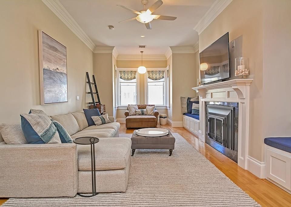 Available for a move in date of 7/15 - 9/1! A rare find in the City Point neighborhood, with more space than most single family homes, one parking spot, and a spacious and private backyard. Character abounds in this beautifully crafted, turnkey, energy efficient brownstone, adorned with soaring ceilings, custom built-ins throughout, gas fireplace, Hunter Douglas blinds, Jacuzzi tub, washer/dryer and storage galore. The large main level's open floor plan includes a kitchen, breakfast nook, dining room, living room and half bath- perfect for entertaining. On the garden level are 3 large bedrooms and 2 full baths. Open the backdoor to a large and full enclosed yard, providing a private oasis in the heart of the city. Castle Island two short blocks away, M Street Park one block away, and South Boston Catholic Academy and neighborhood corner store a stone's throw away. A commuter's dream ~2 miles to downtown Boston by walking/biking or bus service less than a block away. Pet friendly!