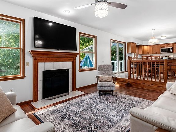 Fabulous location on an established street in sought-after Beechwood Trails! Imagine sitting on your private backyard deck for a peaceful alfresco dinner, or enjoying a quiet night sitting by the fire in the sunken family room! This home offers a welcoming open-concept living space filled with views of the beautifully landscaped lawn, updated kitchen and stainless appliances, and an eating space for your entire crew. Spacious bedrooms include an oversized owner suite with bath, large flex space, and a private entrance from the backyard. The full basement boasts high ceilings offering so much potential for added living space, and ample storage space in the large concrete crawlspace! Recent improvements include new "stone" coating on garage floor and crawl space, newer roof, and fresh paint on the entire interior! Beautifully maintained, and ready for you! Welcome home!