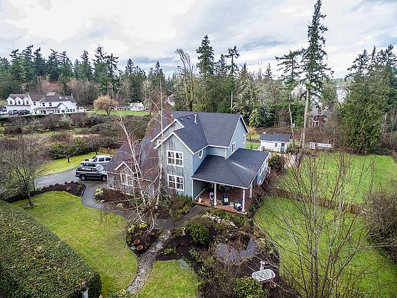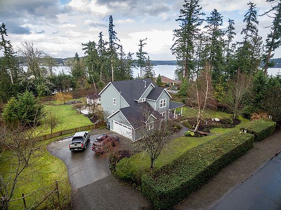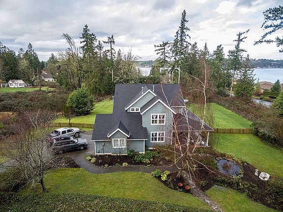 All things Gig Harbor wrapped up into one serene Fox Island property. 1.5 acres landscaped with blueberry bushes, fruit trees, chicken coop, sport court encircled by custom fencing and sneak peeks of the puget sound. Enter home through the stunning red brick covered patio that over looks garden &pond. Interior has no detail spared dripping with crown molding &bead board. All white kitchen with double Viking ovens, Hardwood floors through out home and French doors to let in puget sound breeze