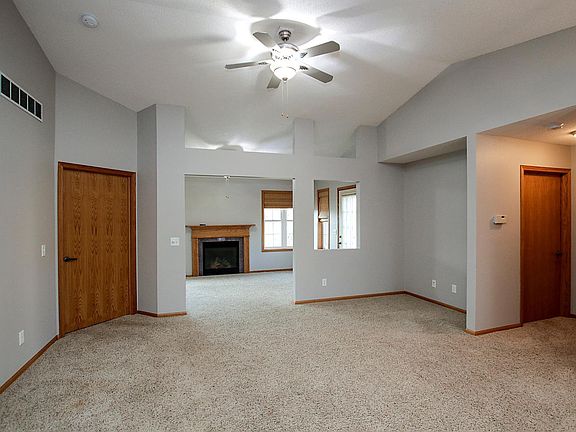 The Meadows is where this 2 bedroom one-level townhome is located. Features an open floor plan with vaulted ceilings, gas burning fireplace in sunroom, primary bedroom with bath & walkin closet. Patio over looks pond. Finished double attached garage. Assocation takes care of lawn care and snow removal. This home is ready to move into!
