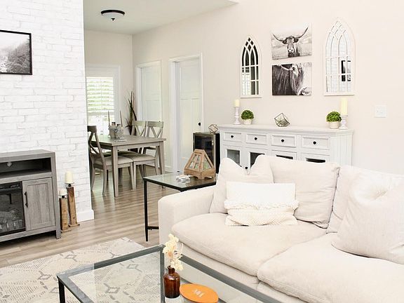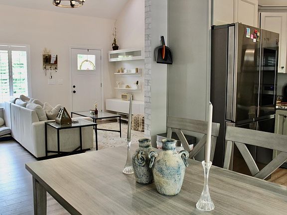 Lovely one level cottage with an open concept, wide plank wood floors and stainless steel appliances. Smart refrigerator, washer/dryer hookups in dedicated laundry room. A newer construction (2021) with plenty of natural light, plantation shutters and cathedral ceiling in great room and beautiful views of the countryside. Sits on 1.20 acres with a tree lined front yard and backed by acres of untouched woods. Large front yard, fenced in backyard with separate back dog yard access. Shed off of paved drive is available for additional storage. Centrally located off highway 48 to Clarksville, Dickson and Nashville. *No HOA* **option for partially furnished: living room table pictured and not-pictured gray faux leather sectional for living room. ** Owner pays for water, electric and trash will be renters responsibility. Small and large dogs allowed, no cats allowed. Renter must obtain renters insurance. No smoking in any capacity. Yard must be maintained if not utilizing lawn services, maintenance is additional fee.