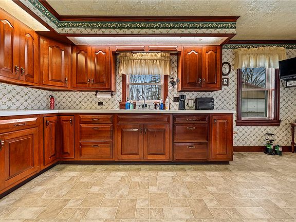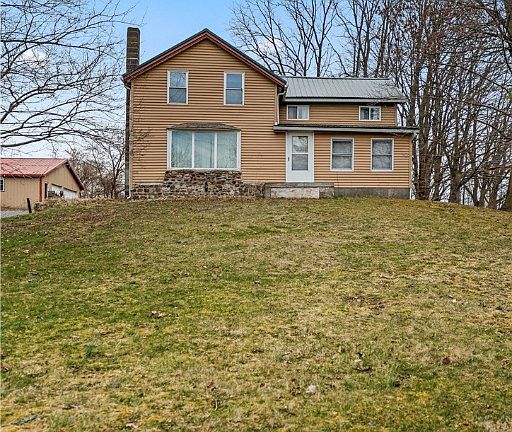 Welcome to 873 Lake Rd! This spacious home boasts nearly 5 acres of land, offering ample privacy and room to roam. Featuring 3 bedrooms, 2 baths, and a large cherry kitchen, this home is perfect for comfortable living. The first floor includes a dining room, den, living room, office, sunroom, as well as a convenient first-floor bedroom and bath with laundry facilities. Upstairs, you'll find two additional bedrooms, a full bath, and the potential to add more bedrooms if desired. Outside, the property features a large pole barn and several outbuildings for storage. Don't miss the opportunity to make this private retreat your own!