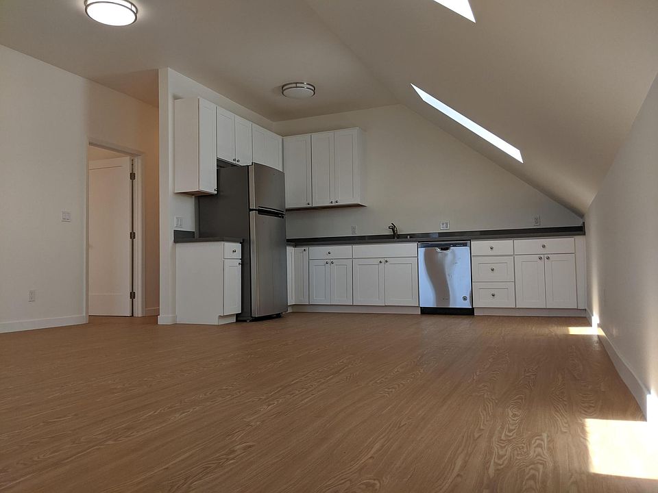 Experience a virtual tour! Copy and paste and remove spaces: youtu.be / Huc0SxqB5qY Enjoy cozy privacy with stunning views of quiet tree-lined Alameda semi-cul-de-sac from spacious brand new three bedroom 3rd floor apartment of fully restored Queen Anne beauty. Light-filled stairwell welcomes you to large kitchen and family room with beautiful laminate wood floors and new double-pane windows. Kitchen features glorious skylights and all-new refrig, dishwasher, disposal, gas stove, ample wood cabinets, generous counter space, and gas stove. Three comfy bedrooms with large closets and windows. All-new full bathroom with gleaming glass shower, lovely vanity. Central heat and air cond with double pane windows for perfect climate control. Easy access to beautiful front and rear gardens with fruit trees. Easy access to Park Street and South Shore Center restaurants, shops, grocery stores, and public buses. Fun and friendly neighbors hosting weekly neighborhood TGIF dinners, and an annual block-wide garage sale and picnic. Plenty of access to biking, walking, roller blading, or take a short drive to the ferry to head to the city. Additional details -3BR / 1.5BA, 1255 sq. ft -Completely rebuilt and renovated, all-new everything -Video walkthrough available -Beautiful laminate hardwood floors throughout -Shared front and back garden access -Central heating and air conditioning -Tankless water heater -Hookups for washer/dryer -Off street parking -5-minute walk to Park Street with plenty of restaurants and shops, 5-minute walk to South Shore Center with grocery stores, restaurants, -and shopping, 10-minute walk to Alameda Beach -A few minutes drive from Alameda Ferry Station -Great schools -No pets Owner pays for trash and water. Tenant pays for gas and electric. No pets.