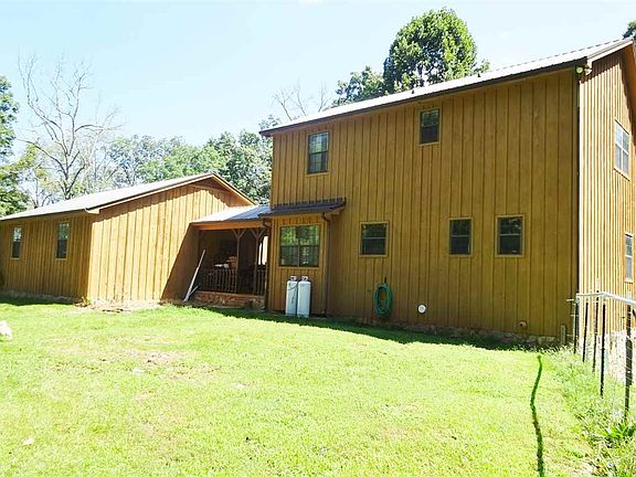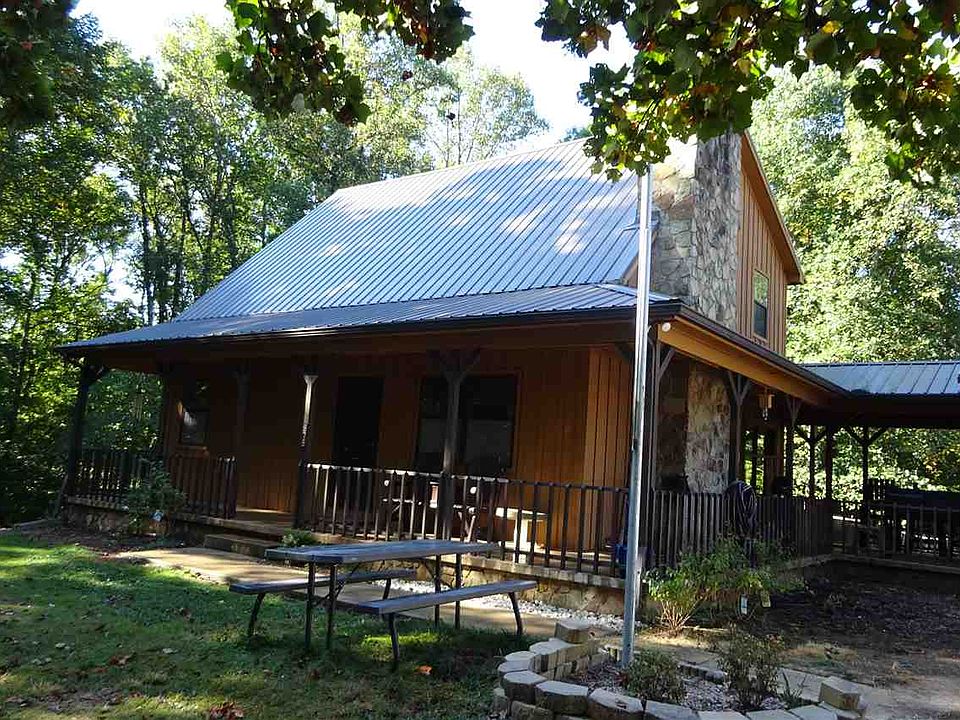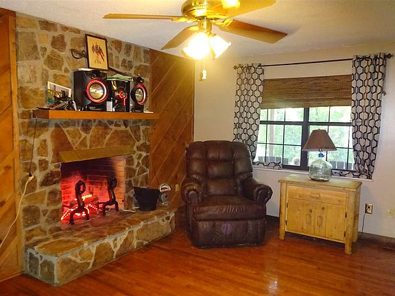 Tucked away, but close to everything- hospitals, Walmart and more surrounded by trees, is spruced up and redone cabin. Over 4 acres with about 1.5 cleared. Unrestricted. Room for a horse or any animals, or for kids to play. Metal roof just over a year old. New hardwood flooring on main level and stairs. New laminate upstairs. New kit. counter top, sink, back splash and tile floor. Bathrooms and basement refurbished too! Fresh paint and more. Fenced yard. Covered breezeway leads to extra large 2 car garage. Should pass any loan requirements. Just minutes to town, close to everything-Wal*Mart or Rte.#92. Neat place! Seller has made plans-is very motivated to sell.