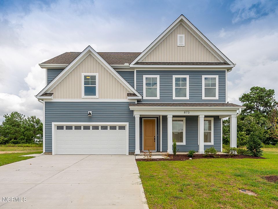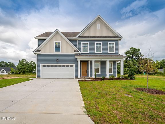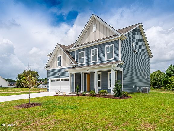 This stunning Traditional Style New Construction is located in the new Country Club Creek development in Ayden, across the street from Ayden Country Club Golf Course, offering abundant space and storage. The home features 4 bedrooms and 3 bathrooms, with an oversized pantry and a versatile home office/flex space on the main level. The 4th bedroom is spacious enough to double as a bonus room, complete with a large storage closet. A 2-car garage and full front porch add to the charm. The laundry room is conveniently located on the second floor alongside all bedrooms, each equipped with sizable closets. The primary suite showcases separate vanities, a walk-in shower, and a generous walk-in closet. The kitchen is a focal point, featuring upgraded cabinetry with dovetail drawers and soft-close features, quartz countertops, a tiled backsplash, and designer finishes with upgraded lights and plumbing fixtures throughout.