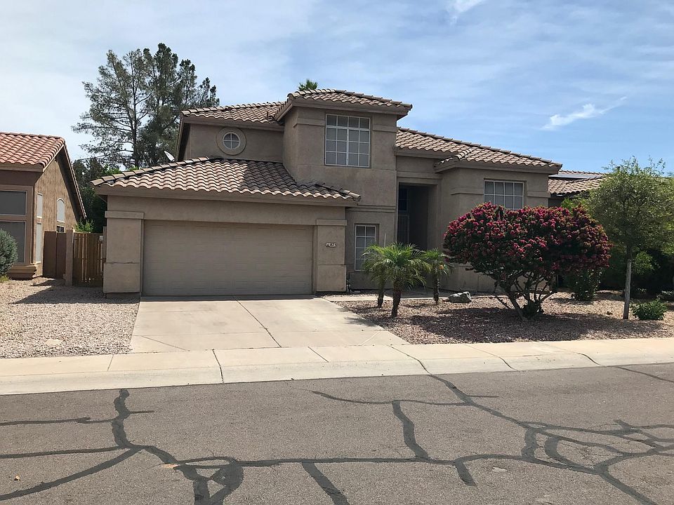 A beautiful 4 bedrooms/3 full baths + bonus room located in a quiet lakeside community close to the Chandler Fashion Center, the Arizona Research Center, Intel and other major companies. Walking distance to Whole Foods and nearby restaurants. Award winning schools to choose from including CTA Goodman Elementary & Paragon Science Academy. Convenient freeway access to the 101 and the 202. One bed/bath combo located downstairs, perfect for in-laws or teens. It has an open spacious floorplan with vaulted ceilings, large windows for plenty of natural light, and lots of closet space. The large backyard has a covered patio, and an artificial turf lawn. Washer and Dryer hookups. Functional kitchen with center island and granite counter tops. Don't miss your opportunity to live in a wonderful house in a great neighborhood. *This is a smoke free and drug free property. Minimum 12 month lease term desired. This is a smoke free and drug free property. There is room on the property for four vehicles total, 2 in garage and 2 in driveway. Street parking for prolonged durations is monitored by the HOA. Landlord must be notified of any change of occupant(s) or additional occupants and approval by Landlord of such change is required. Each additional occupant added after execution of the lease agreement will result in additional rent. If you have a pet, the landlord will charge a refundable pet deposit of $300, non-refundable pet cleaning fee of $100 and pet rent of $35 per month. Tenants must get landlord permission to have a second small pet. If permitted, the tenants must pay the same refundable pet deposit, pet cleaning fee and pet rent as the first pet. No more than two pets are allowed. Move-in funds will include any applicable pet deposits, a $300 non refundable cleaning fee, $2900 refundable security deposit, and the first months rent of $2943. Tenant is responsible for all utilities including gas, water/sewer, and electric. Tenant is responsible for yard upkeep.