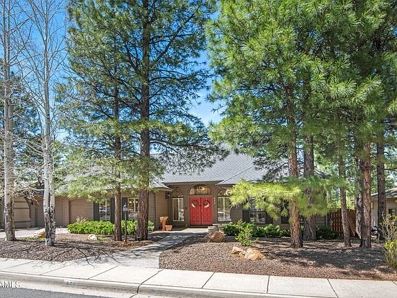 Amberwood is one of the most desirable communities in all of Flagstaff. Why? Location, epic homes and large lots. This particular home stands out above the rest - single level, 4-bedrooms, plus a bonus room/work shop, luxury appointed eat-in-kitchen, formal dining (or could be den), soaring living room ceilings w/fireplace, large main bedroom and bathroom. Backing HOA open space w/mature ponderosa pines. The backyard is quiet and comfortable w/raised view deck for entertaining. Brand new storage shed & set up for the home gardener with irrigation system in place. Built with dual water heaters & AC units. All this just a few minutes from downtown Flagstaff. Close to Continental & Aspen Valley Golf Club, multi-use Foxglenn Park. And of course hiking & biking trails all at your finger tips.