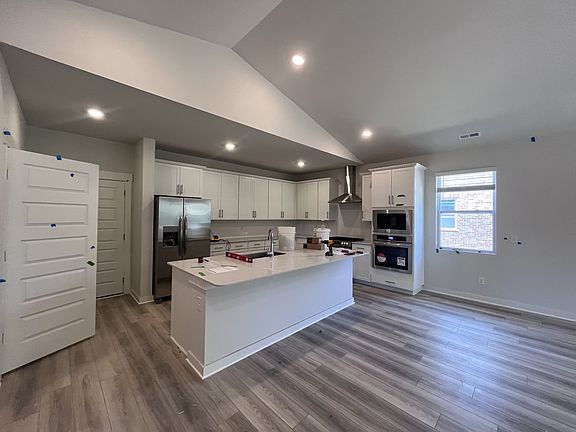 Last phase of Durham Farms! This Warner Plan on a cul-de-sac homesite backing up to a tree line is stunning! The open floor plan living room features cathedral ceilings that open up to the gourmet kitchen with a massive island, tons of cabinet space, wall oven and microwave, gas range with vent hood and even the refrigerator! The spacious owners suite includes a tray ceiling and double walk-in closets. The upstairs loft is accompanied by 3 bedrooms, 2 bathrooms and laundry room. *Photos are samples and do not represent actual home*