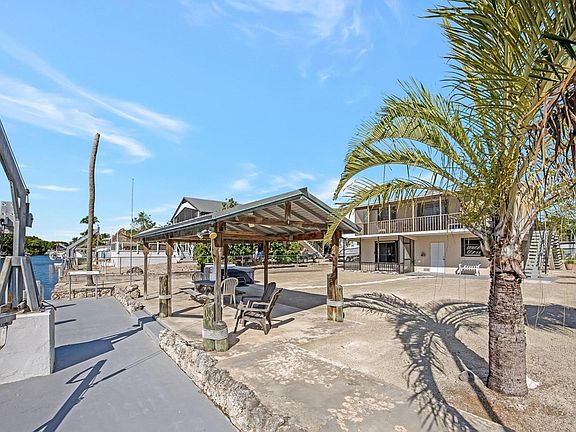 This property is a paradise for individuals who love waterfront island living, and easily accessible boating, fishing, diving, and more. Legal pre-firm 1/1 down with separate entrance and two storage areas to easily convert to recreation space or more. Carport or under cover parking included. Located at the Northern tip of Key Largo this home provides shopping ease minutes away, as well as travel to the mainland, Miami, & points North. Cleverly balanced home on this spacious fenced lot, with plenty of space to move about, store boats, trailers, toys, or add on your private pool (your sand beach is already there) 11,000lb davits & private boat ramp. Large Tiki Hut in place with plenty of undercover space to relax or dine al-fresco. Foliage designed with zero yard maintenance in mind. This is a boater's dream with easy access to the Bay, nearby restaurants, stunning sunsets, fishing, & proximity to Adam's Cut for Ocean activities makes it the ideal spot for water enthusiasts. Two bedrooms, two baths up, and one room, one bath separate quarters down. Floor plan provides generational family living and plenty of yard space for your pets to live their best life safely and protected from the elements of Mother Nature. This home has endless opportunity to expand. The possibilities are endless! No through traffic makes for an exceptionally quiet and friendly street.