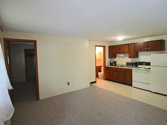 Second Floor 1 bedroom Apartment includes in wall AC, stove, refrigerator,two closets. Laundry in building. Convenience store short walk. Quiet and secure neighborhood on bus line. Tenant responsible for electric heat plus cable and phone if used. Smoking is only permitted outside the units on the covered front and rear porches at a friendly distance from any other non-smoking tenants.