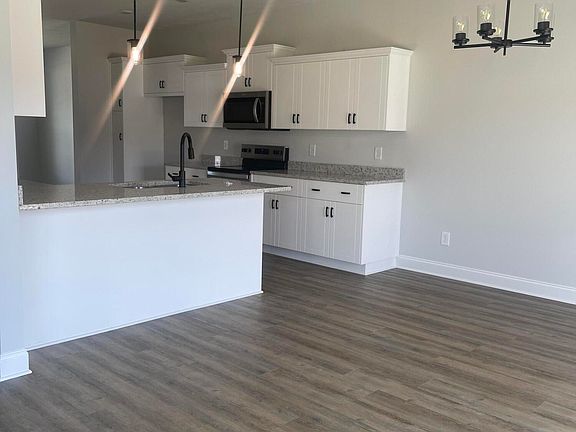 Welcome home to Cornerstone Creek and the Durham, 5 bedrooms and 3 full bathrooms of beautifully functional living space. This home features a grand 2-story open foyer which allows for plenty of natural light to enter. The foyer connects to a formal dining room which leads into the kitchen. The kitchen has custom cabinets, granite counter tops, 8 inch stainless under-mount sink, recessed & pendant lighting, and Whirlpool stainless steel dishwasher, smooth top range & built-in microwave. Luxury wood look vinyl in main living area of home, soil and stain resistant frieze carpet with 6 lb. pad in bedrooms. Owner's suite with double vanity, garden tub with tile surround, walk in shower with glass door. This home is complete with a 10x12 covered patio in the backyard perfect for entertaining family and friends Home is completed.