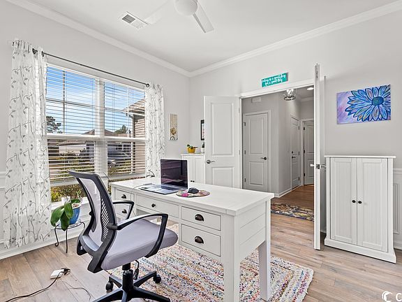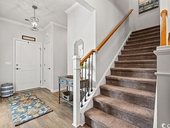 A PLACE TO CALL HOME. The perfect balance between formal and casual living, this 4-bedroom Hartwell model is only 3 years young and has all the upgrades! The home boasts beautiful Luxury Vinyl Plank floors and crown molding throughout all the first floor living spaces and primary suite combining style with effortless function. Upon entering the home, a flex room adorned with french doors, crown molding and panel trim detail, provides multiple options such as formal dining, home office or playroom.  A laundry room with additional shelving and a powder rounds out the front of the home and leads into the kitchen, great room and dining for true open concept living.  The modern grey cabinets offer tons of storage, and the large corner pantry will keep everything out of sight.  The oversized island is perfect for cooking while entertaining guest or afternoon snack-time and homework with kids.  Next to the dining area, is the perfect jewel of a room to enjoy coffee in the morning and cozy up with a book or movie in the evenings.   The downstairs primary bedroom offers gorgeous views of the backyard, has a large, tiled shower, private W/C and roomy walk-in closet.  The upstairs has a large loft and tv area, 3 large bedrooms and an extra-large guest bathroom; there is room for everyone!  Located on the pond, the backyard is a beautiful oasis to garden, dine outside and enjoy the gorgeous South Carolina Sunsets.  Heritage Preserves is a natural gas community less than a mile from International Drive.