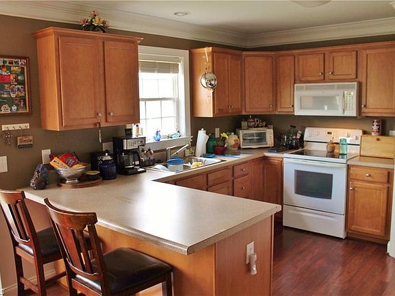 Priced to sell! Over 2,100 square feet with bonus room in finished basement, master suite on the main level (with jetted tub, walk-in closet, dual sinks, seperate shower), pergo laminate wood floors, tile floors, crown molding, upgraded bull-nose rounded corners, rocking chair front porch, fenced backyard, gas log fireplace in living room, deck off the back, wooded behind home. Price does reflect that home needs new carpet and needs fresh paint. What a great property at quite a deal, under tax value!